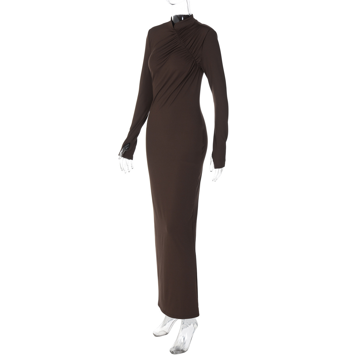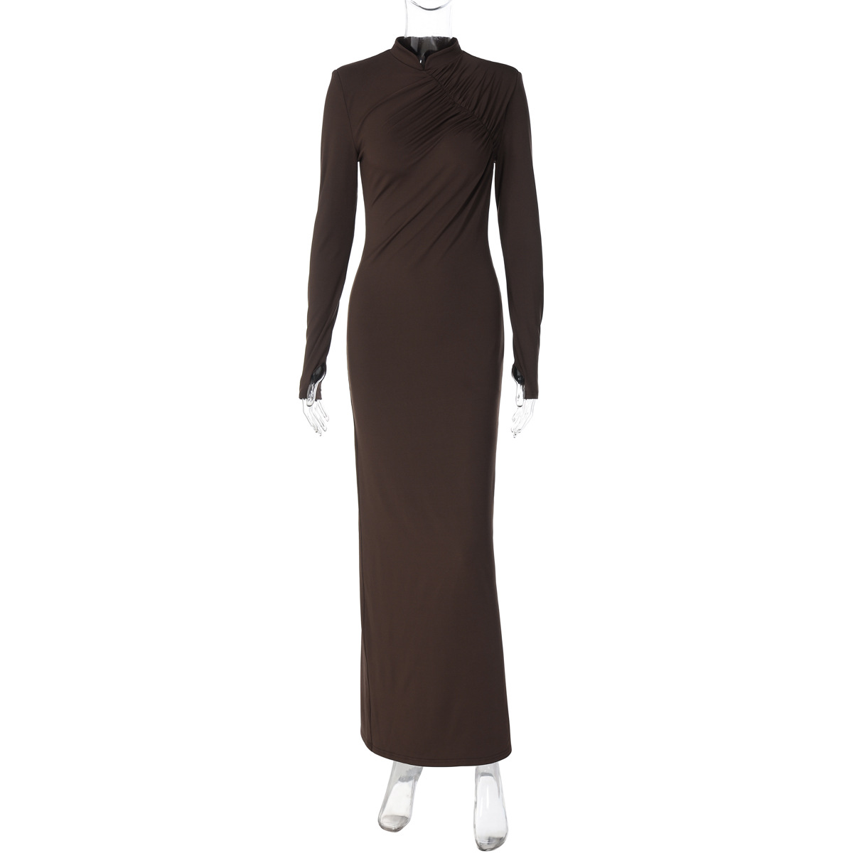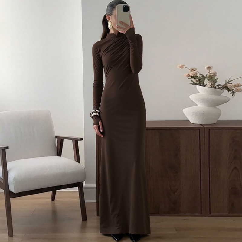Fashionable Temperament Back Slit Long Sleeve Arm Covering Dress