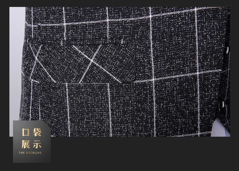 Suit Fashion Business Casual Gentleman Men's Italian Style Elegant Plaid Slim-Fit Formal 3-Piece Suit