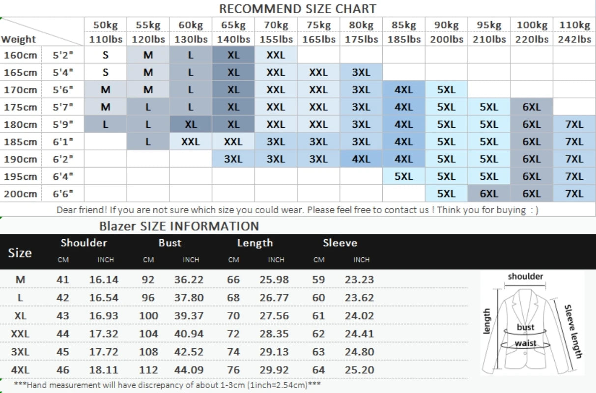 - XL (EUR L): Chest 42-44", Waist 36-38", Suitable for height 6'1"-6'3"